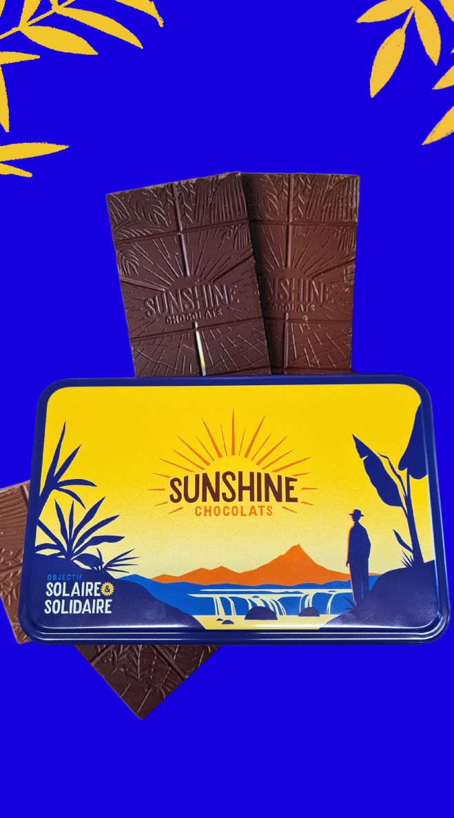 Une boîte en métal aux couleurs gorgées de soleil, qui renferme un véritable trésor zéro déchet : quatre tablettes de 100 g à choisir parmi notre irrésistible gamme de chocolats en vrac, certifiés bio et commerce équitable. Un plaisir gourmand qui fait du bien à la planète et aux papilles : à chaque bouchée, une explosion de saveurs, un geste engagé, et un bonheur durable !